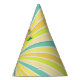 Niedliche Geburtstag Huhn Cartoon mit blauen Augen, Geburtstagshut, Geburtstagskuchen mit Kerze und fröhliches Geburtstagsschild oben mit farbenfrohen Rochen Hintergrund. Anpassen, um den Namen zu ändern oder den Text zu löschen.