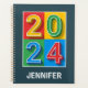 Schöne farbenfrohe geometrische Gestaltung 2024 mit blauen, roten, gelben und grünen Zahlen und Rechtecken. Sie können die Hintergrundfarbe leicht ändern. Es ist einfach, es anzupassen, indem man Namen/Datum/Text usw. ändert.