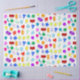 Ein buntes Muster, das 2-dimensionale und 3-dimensionale Zeichen zeigt. Ein lustiges geometrisches Muster mit süße Figuren, die sich ideal für ein Babydekor eignen, Kinderzimmerdekoration, Kindergeschenk, zurück zum Schulgeschenk, Geschenk für eine Vorschullehrerin oder Kindergärtnerin oder Geschenk für Weihnachten oder jeden anderen besondere Anlass.