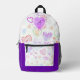 Dieses lustige Rucksack-Design zeichnet sich durch ein farbenfrohes Herzmuster auf einem weißen Hintergrund aus, das an der unteren und unteren Seite lila ist. Personalisieren oder entfernen Sie das Anfangsbuchstabenmonogramm, das im Herzen auf der Vorderseite zentriert ist. Ein lustiges Design für ein Geschenk für zurück zur Schule, Windelbeutel, Picknick, Strand, Reisen und mehr.