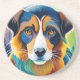 Farbiges Hundegesicht nah Getränkeuntersetzer