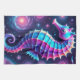 Dieses Design zeichnet sich durch ein farbenprächtiges lila Seepferd-Set vor einem galaktischen Hintergrund aus.