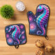 Farbiges kosmisches Seepferd Ofenhandschuh & Topflappen-Set