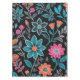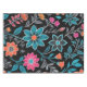 Dieses nahtlose Muster zeichnet sich durch eine Vielzahl farbenfroher Blume und Blätter auf dunklem Hintergrund aus. Die Blume sind in Rot, Orange, Gelb, Rosa, lila und Blau gehalten. Die Blätter sind blau und grau.