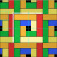 Geometrische Rechtecke sind diagonal mit kleinen Quadraten gestaltet, die standardmäßig schwarz sind, aber neu färben können. Dieses Design besteht aus 10 verschiedenen Farbschemas.