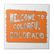 Farbiges orangefarbenes Begrüßungszeichen Fliese