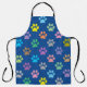 Farbenfrohe Pfotenmuster auf blauer Schürze