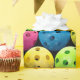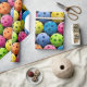 Ein buntes Verpackungspapier für Pickleball Liebhaber. Dieses Design hat eine bunte Auswahl von Pickleballs in Farben oder Fuchsia, gelb, blau, orange und grün auf einem schwarzen Hintergrund.