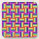 Dieses Kunstwerk zeigt farbenfrohe Regenbogenblöcke in einem lustigen Neonmuster.