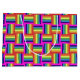 Dieses Kunstwerk zeigt farbenfrohe Regenbogenblöcke in einem lustigen Neonmuster.