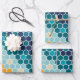 Farbiges Retro-Blumenmosaik Hexagon-Muster Geschenkpapier Set