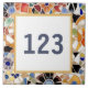 Bitte beachten Sie: Das ist ein faux-Mosaik. Es ist eine gedruckte Grafik, die die Illusion von Mosaiksteinen verleiht. "Custom house number plate", "personalized house no plaque", "personal customized text sign", "moderne abstrakte Design Keramik Fliesen", "multicfarbenfarbene gaudi mosaic", "building home apartment door door", "hell lebendiges gelbes blau", "fun beautiful mediterranican", "stylish spanish villa casa", "dekorativ farbig multicolor"