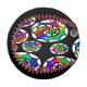 Farbenfrohe spiralförmige Muster bedrucken auf schwarzem Hintergrund.