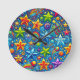 Lebhaftes, skurriles Muster gefüllt mit einer Vielzahl von Sternen in verschiedenen Farben und Stilen. Der Hintergrund ist tiefblau, was die lebhaften Sternenfarben in Rot-, Gelb-, Grün-, Blau- und lila Farbtönen verstärkt. Einige Sterne sind aufwändig detailliert, während andere ein einfacheres oder abstraktes Design haben. Neben den Sternen gibt es Wirbel, kreisförmige Formen und farbenfrohe fließende Linien, die ein Gefühl von Bewegung und Dynamik im ganzen Bild erzeugen. Der Gesamteffekt ist spielerisch und tatkräftig und ruft ein Gefühl von Staunen und Fantasie hervor.