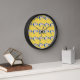Farbiges Tiermuster auf gelbem Hintergrund Uhr