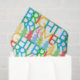 Einzigartig farbenfrohe Gruppe von immergrünen Bäumen in wunderschönen Urlaubshütten. Jeder Baum hat eine Mosaikstruktur, die aus einem handgemalten Aquarelldesign, für das SW Designs bekannt sind, entstanden ist. Farbenfrohe Schrift fügt einen fröhlichen Urlaub Gruß.