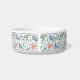 Dieses stilvolle Haustier füttre eine Schüssel mit einem farbenfrohen Ozean-Muster, das verschiedene Wale, einen Narwal, Algen und Splash, über einen weißen Hintergrund. Einfach mit dem Namen Ihres Freundes anpassen!
