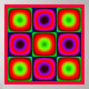 Eine sehr laute, pulsierende, flackernde und bewegte Farbkombination.