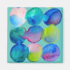 Eine farbenfrohe abstrakte Aquarellmalerei der Künstlerin Sacha Grossel mit cool blauen, lila grünen Kreisen in einem Muster-Design, um die schmelzenden Farbmuster zu zeigen. Die Hintergrundfarbe ist anpassbar. Entspannung und Entspannung.