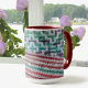 Farbenfrohe, mehrfarbige Gestaltungsmuster in hellblau, grün, braun, weiß und rosa Farbtönen umschließen diese Tasse. Die originale Häkelnadelke wurde mit Liebe handgefertigt. Diese wunderschönen Tasse haben das Gefühl von gemütlichem Komfort, alles in Liebe verpackt und machen wunderbare Geschenke. Dieses Bild ist eine Originalfotografie von JLW_FOTOGRAFIE