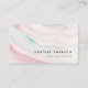 Farbige Abstrakte Visitenkarte. Die elegante, einzigartige und moderne Visitenkarte besticht durch ihren abstrakten, handbemalten und pastellfarbenen Hintergrund in Rosa, lila und Blau.