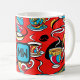 Die Coffee Tasse besticht durch ein lebhaftes und spielerisches Design, das sich auf bunte Teetassen und Kaffeetassen in wirbelnden, abstrakten Mustern konzentriert. Der kühne rote Hintergrund kontrastiert wunderschön mit Blau-, Gelb- und Schwarztönen, was einen visuellen Eindruck hinterlässt. Das große, individuell anpassbare Monogramm (derzeit als "MW" angezeigt) wird in einem hellblauen Quadrat mit schwarzem Text hervorgehoben dargestellt und fügt eine persönliche Touch hinzu. Diese Tasse ist sowohl funktional als auch stilvoll und eignet sich ideal für Kaffee- oder Teeliebhaber, um dem Alltag einen Pop der Persönlichkeit zu verleihen. Ersetzen Sie die Initialen im Monogramm durch Ihre eigenen bevorzugten Initialen.