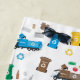 Ein niedliches, buntes recycelnd Müllwagen-Muster mit recycelnd Mülleimer und Recyclingmaterialien. Grüne, blaue, gelbe, braune und orangefarbene recycelnd Müllfahrzeuge, die Papier, Kunststoff, Metall, Glas und Kompost recycle. Ideal für alle Müllwagenliebhaber, ob groß oder klein.