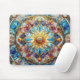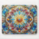 Das ist ein Mauspad, das ein farbenfrohes Glasdesign hat.