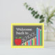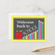 Die Postkarte "Welcome Back To School" enthält ein Thema aus der Tafel mit farbigen Stiften und einem roten Apfel. Auf der Rückseite finden Sie personalisierbaren Text zum Hinzufügen Ihrer persönlichen Nachricht.