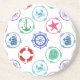 Nautisches Muster mit Anker, Rad, Kompass, Rettungsring, Schiff, Seestern, Muschel und Krabbe| © und ® Bigstock® - Alle Rechte vorbehalten.