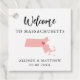 Hochzeitswochenende Begrüßungsgeschenktafeln für Gäste zu Ihrer Hochzeit mit dem Bild der Massachusetts. Sie können die Farben für jeden Teil dieses Designs bearbeiten und das Herz an den Ort Ihrer Hochzeit bringen. Klicken Sie zum Ändern der Farben auf Personalisieren und dann auf "Bearbeiten mit dem Entwurfstool". Wählen Sie das Element aus, das Sie bearbeiten möchten, und verwenden Sie dann die Tools, um die Änderungen vorzunehmen.