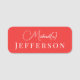 Unser individualisierbares Namensschild ist die perfekte Leinwand für Ihre Identität. Dieses elegante Design mit einem modefarbenen, modefarbenen Hintergrund zeichne den Fokus auf Ihren Namen in einem einladenden, handgeschriebenen Stil. Ihr Familienname nimmt mutig die zweite Zeile in Großbuchstaben ein, um Klarheit und Erkennbarkeit zu gewährleisten. Ob bei einer Konferenz, einer Hochzeit oder einem lässigen Treffen, dieser Name steht für eine Vielzahl von Anlässen und Anzügen. Übernehmen Sie sich, wie Sie wahrgenommen werden - Ihr personalisiertes Namensschild wartet!