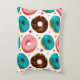 Aquarellmuster mit rosa, blau und schokoladenbraunen Donuts. Süßes Dessert mit Erdbeerfüllung. Abgeschieden auf weißem Hintergrund.