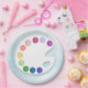 Eine Papiertafel, die so aussieht, als hätte sie eine Farbpalette, die zum Gebrauch bereit ist! Die Farbe ist blau, die Farbe weiß und die Farbe weiß mit zehn schönen Farben. Auf diesen kreativen und lustigen Art Party Tellern servieren wir Ihnen Geburtstagsgeschenke, Mahlzeiten oder Geburtstagskuchen!