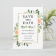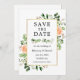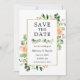 Moderne Eukalyptus Greenery Peach Floral Gold Rahmen Save the Date Verlobung Announcement Card
