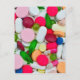 Merchandised product with print of colorful pillas