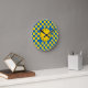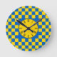 Farbquadrat (blau und gelb) / Muster Rougen Runde Wanduhr