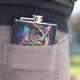 Farbenfrohe Weltraumschwärze farbiges Universum zwischen, schöner zeichnend wilder Zweig, Weltraum-Illustrationsvogel, Tiermalerei bunten Eule,