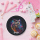 Farbenfrohe Weltraumschwärze farbiges Universum zwischen, schöner zeichnend wilder Zweig, Weltraum-Illustrationsvogel, Tiermalerei bunten Eule,