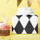 Schwarz-Weiß Diamant Harlequin Muster kundenspezifische Wrapping Paper. Trendy bedruckte Geschenkverpackungen für elegante Geburtstage, Weihnachten, Babydusche, Hochzeitsfeier, Mardi Gras etc. in matt und glänzend. Stilvolles Druckdesign für einzigartige Geschenke. Maßgeschneiderte Größe und Farbe. Verwöhnen Sie Ihre Holiday Geschenke stilvoll. Jeder Farbhintergrund.