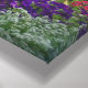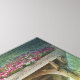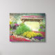 Farbenfroher Felsgarten mit Holztreppen und Wasserfall.