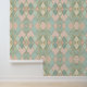 Farbrosa, Aquamarin, Creme und Gold Raute Muster Tapete