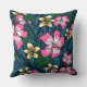Hellrosa, gelbe, aquamarine und grüne Blütenpracht Polynesien, hawaiianisches Dekorationskissen