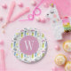 Farbrosa Tennismuster Monogramm Pappteller