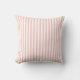 Elegantes, rosa und weiß gestreiftes Muster, nach Maß geworfen, mit einem Kissen oder Kissen, das ein Muster mit weißen und rosa Streifen zeigt.