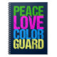 Ein niedliches Farbwächter-Geschenk für jemanden, der Fahne dreht mit der Marschband in der Schule. Peace Liebe Color Guard ist in hübschem Grün, heißem Rosa, Blau und Neongelb geschrieben.