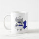 Magst du niedliche Tasse? Magst du Katzen? Diese bezaubernde Tasse hat eine graue Katze, die eine blau-weiße Farbschutzuniform mit einer blauen Fahne trägt.
