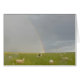 Ein Lama bewacht Schafe unter einem Regenbogen.