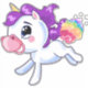 Vinyl-Aufkleber aus einer Kawaii-Einhornverkleidung, mit einer Wolke aus Regenbogengas