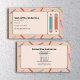 Eine Visitenkarte für einen Privatlehrer mit Illustrationen von zwei Farbstiften und Bleistiftmuster auf einem hellrosa Hintergrund. Telefon- und E-Mail-Informationen werden von Symbolen begleitet. Auf der Rückseite finden Sie alle Kontaktdaten, die Sie benötigen.